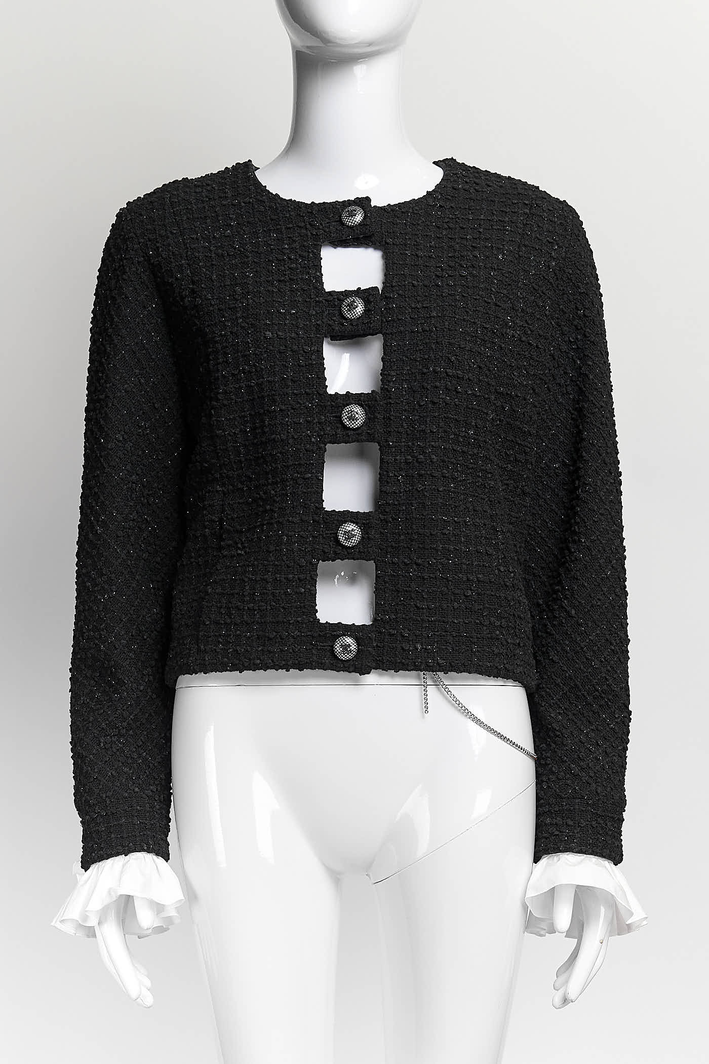 Chanel Black Tweed Jacket with Detailed On Sleeve/Skirt Set 38