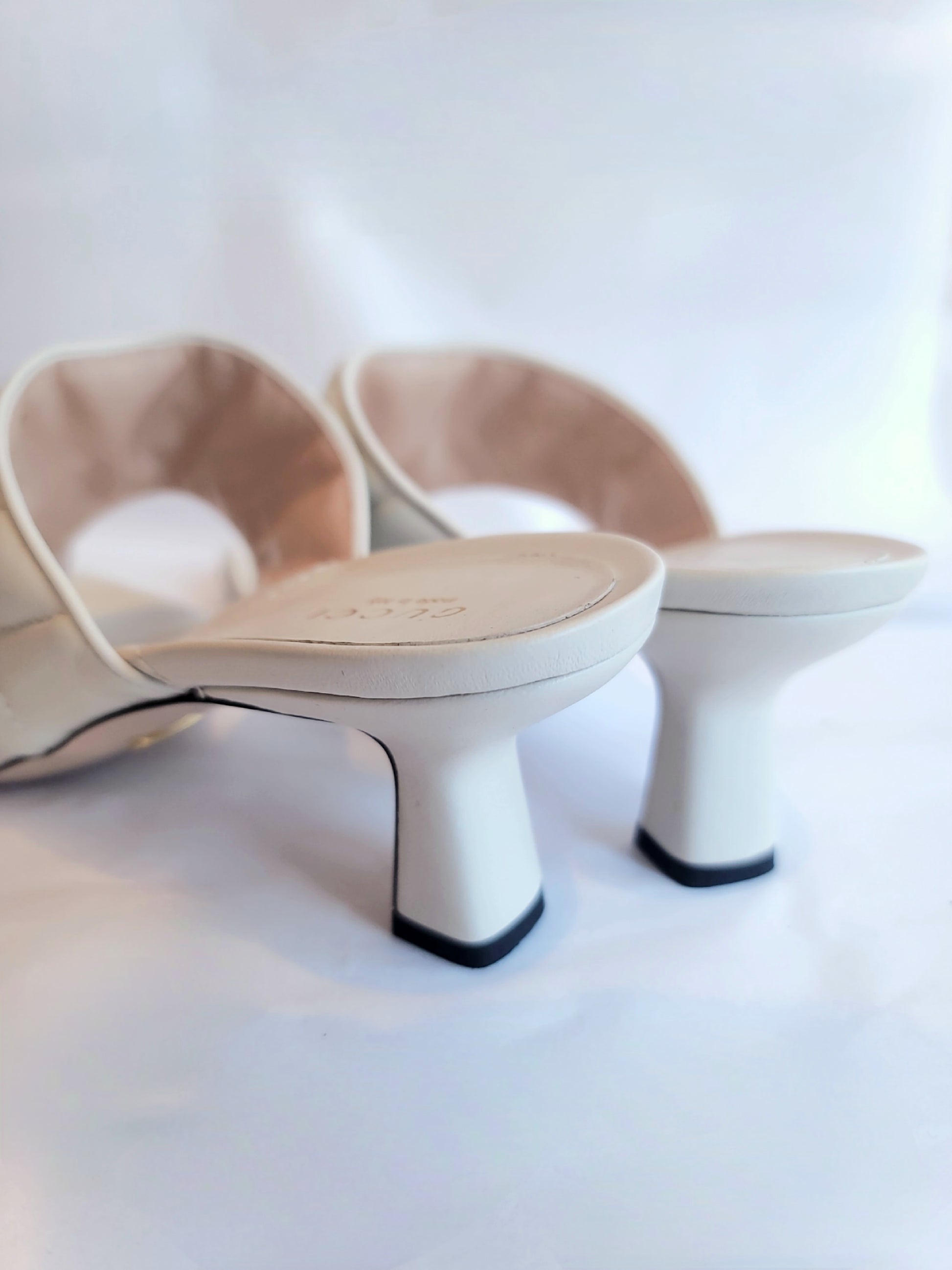 Gucci GG Marmont White Leather Sandal Heel 38.5