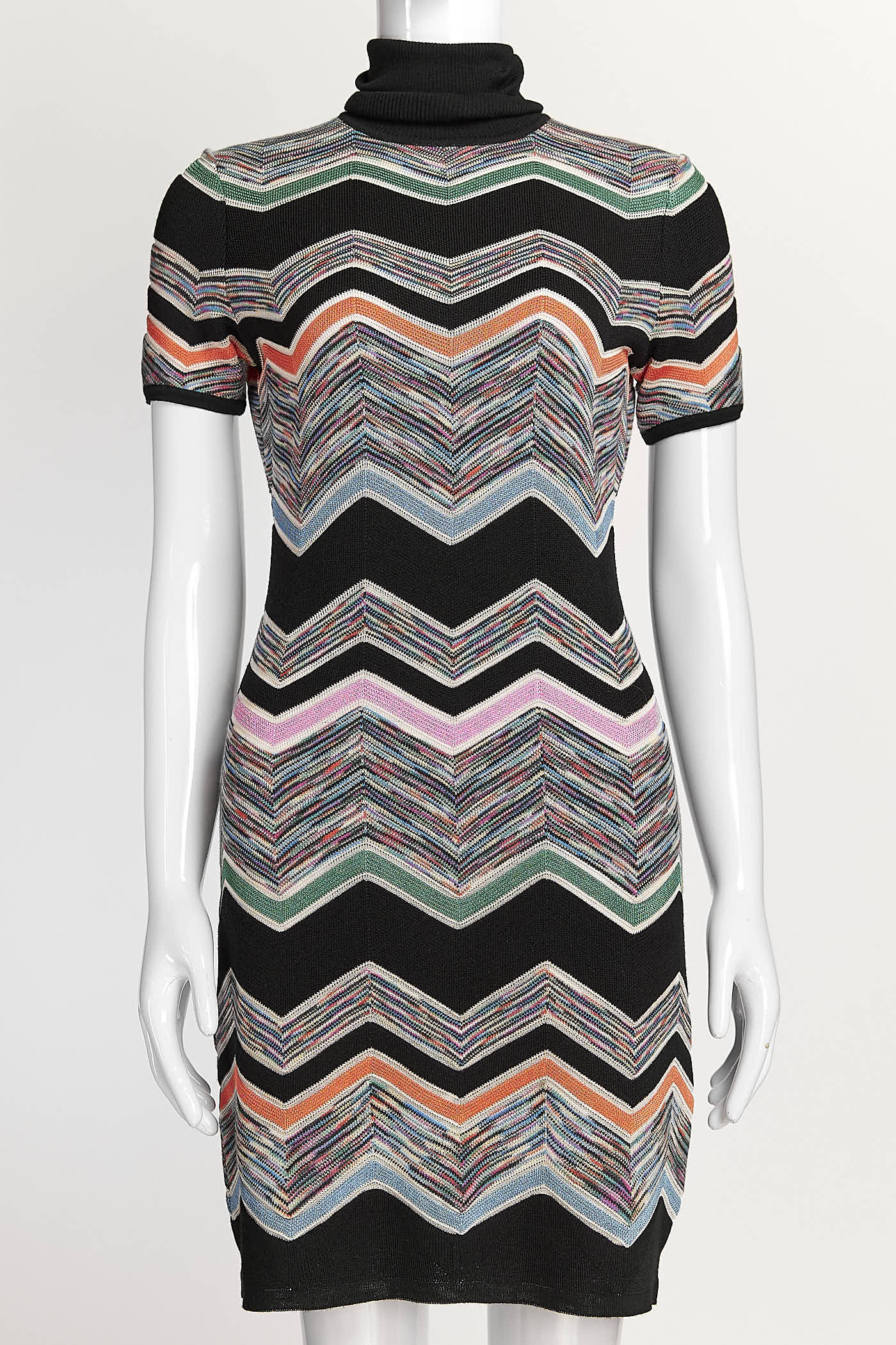 Missoni Black Multicolor Knit Turtleneck mini Dress 40