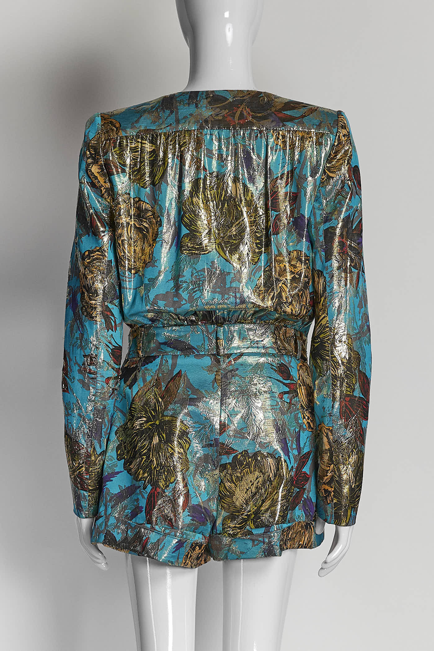 Saint Laurent Paris Gold Turquoise Print Romper 38